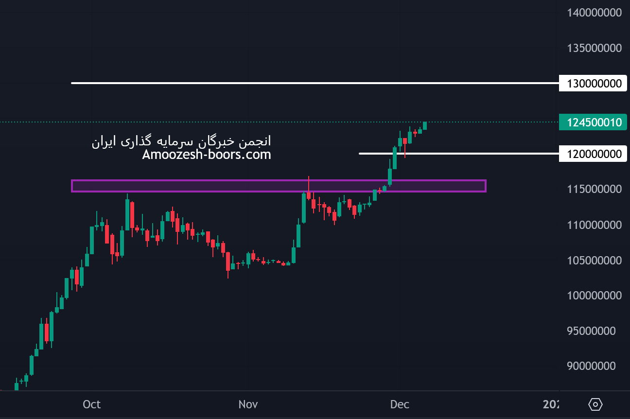 از منظر تکنیکالی طلای 18 عیار رشد شارپی داشته است و در حال حاضر در محدوده 12.450.000 تومن هست، اولین محدوده حمایتی 12.000.000 تومن و مقاومت 13.000.000 تومن خواهند بود.