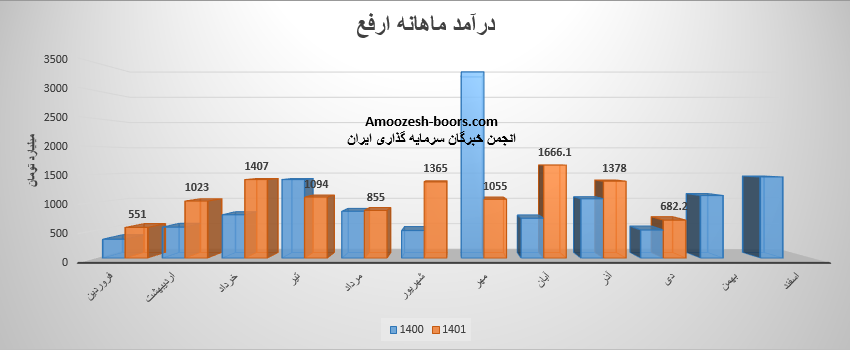 بر اساس گزارش عملکرد ماهانه شرکت آهن و فولاد ارفع درآمد اسفند 1401 شرکت معادل 1756 میلیارد تومان گزارش شده که این رقم تغییرات زیر را تجربه نموده است :