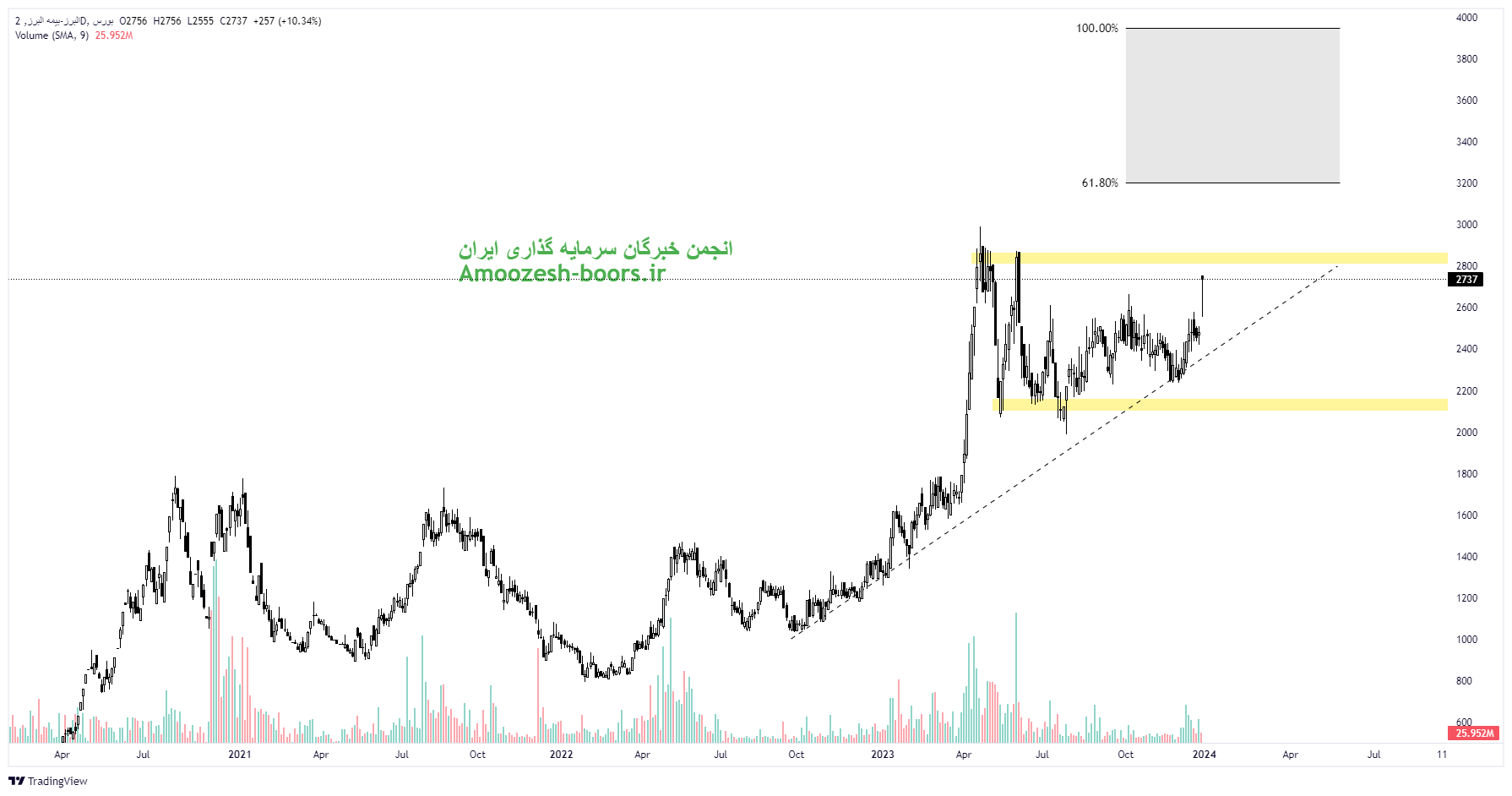 باید در نظر داشت سهم البرز در مرحله اظهار نظر حسابرس جهت تصویب افزایش سرمایه 100 درصدی از محل آورده و سود انباشته میباشد، با توجه به محل و درصدی افزایش سرمایه مشارکت در مجمع ریسک کمی داشته و تغییرات قیمتی را روی چارت ایجاد نمینماید.