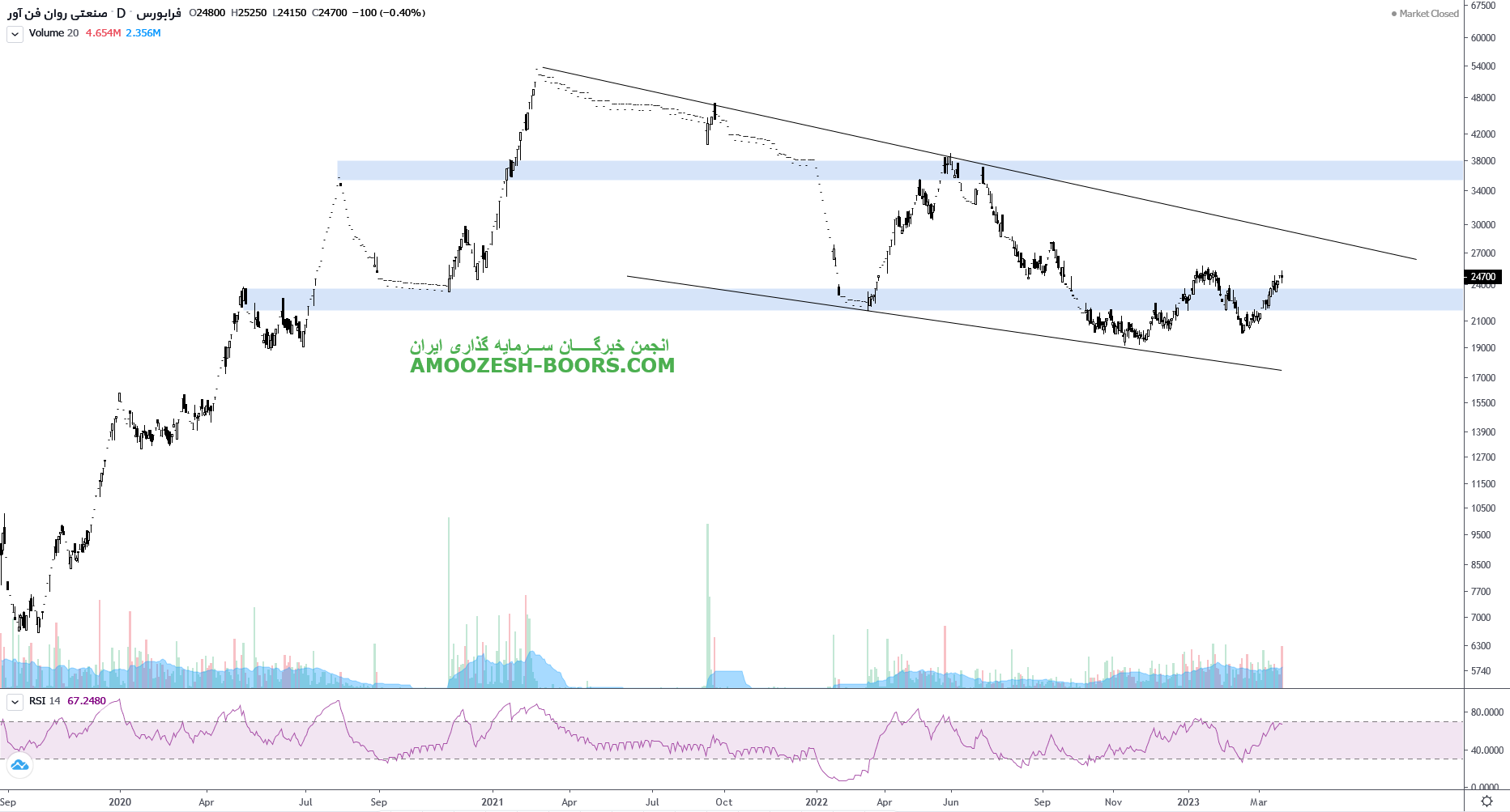 قیمت سهم خفناور پس از برگشت مجدد به بالای حمایت از دست رفته اکنون راهی اولین مقاومت خود می باشد. اولین مقاومت سهم خفناور ناحیه خط روند نزولی در نظر گرفته شده است که میتواند با عبور از این ناحیه رشد خود را تا مقاومت ۳۷۰۰ تومان نیز ادامه دهند. همچنین در صورت تمایل قیمت به اصلاح، حمایت اصلی سهم خفناور ناحیه ۲۳۰۰ تومان تعیین شده است.