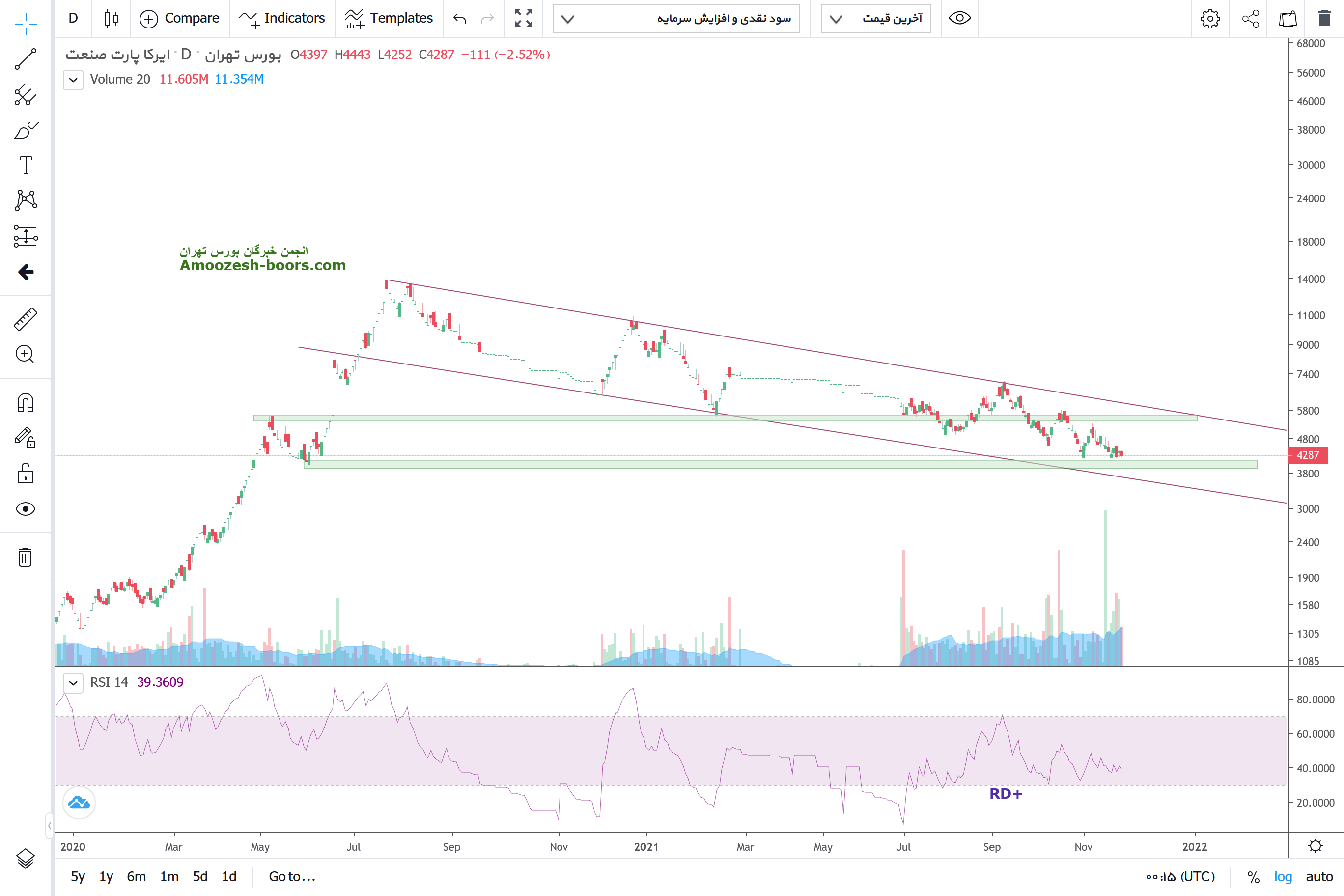 قیمت با رسیدن به محدده کف کانال با ایجاد واگرایی مثبت واقع گردیده است در محدوده حمایت روانی عدد رند 4000 یک سطح حمایتی قوی برای سهم در نظر گرفته شده و انتظار میروند قیمت درین محدوده تثبیت گردد.محدوده 5500 اولین سطح مقاومتی پس از تثبیت در نظر گرفته میشود.
