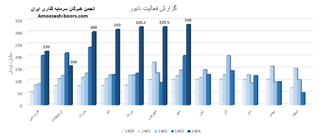 طبق گزارش های منتشرشده در کدال، مجموع درآمد عملیاتی دابور تا پایان مهر 1404 به 1961 میلیارد تومان رسیده است.