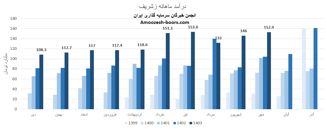 طبق گزارش های منتشرشده در کدال، مجموع درآمد عملیاتی زشریف تا پایان مهر 1404 به 1310 میلیارد تومان رسیده است.