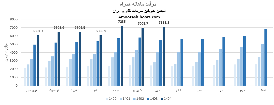 بر اساس گزارش فعالیت سهم همراه که در کدال منتشر شده، این شرکت در این ماه توانسته به درآمد 7005.7 میلیارد تومان دست یابد، این عدد در مقایسه با ماه گذشته تغییر 3%-، در مقایسه با متوسط ماهانه 8%+ و در مقایسه با مدت مشابه 21%+ داشته است.