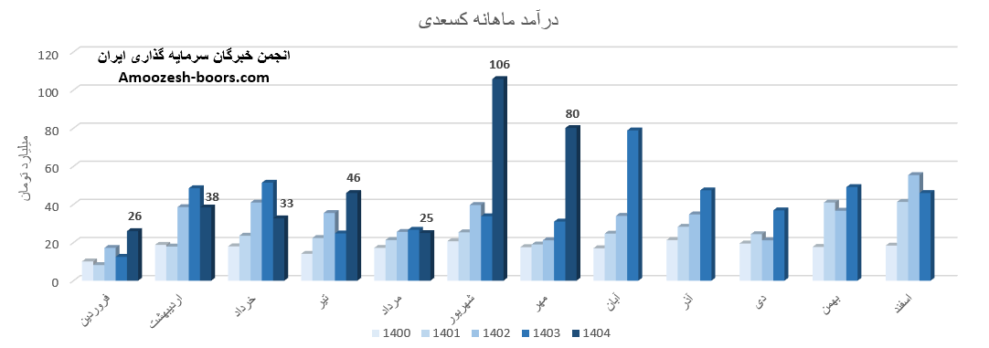 بر اساس گزارش فعالیت سهم کسعدی که در کدال منتشر شده، این شرکت در این ماه توانسته به درآمد 105.8 میلیارد تومان دست یابد، این عدد در مقایسه با ماه گذشته تغییر 323%+، در مقایسه با متوسط ماهانه 132%+ و در مقایسه با مدت مشابه 213%+ داشته است.
