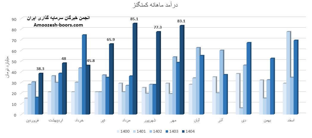 سهام کمنگنز از ابتدای سال مالی تا پایان مرداد 1404، مجموع درآمد ثبت شده شرکت به 283 میلیارد تومان رسیده که نسبت به مدت مشابه سال گذشته 42 درصد رشد داشته، و در همین حال 51 درصد از کل درآمد سال گذشته تحقق یافته است.