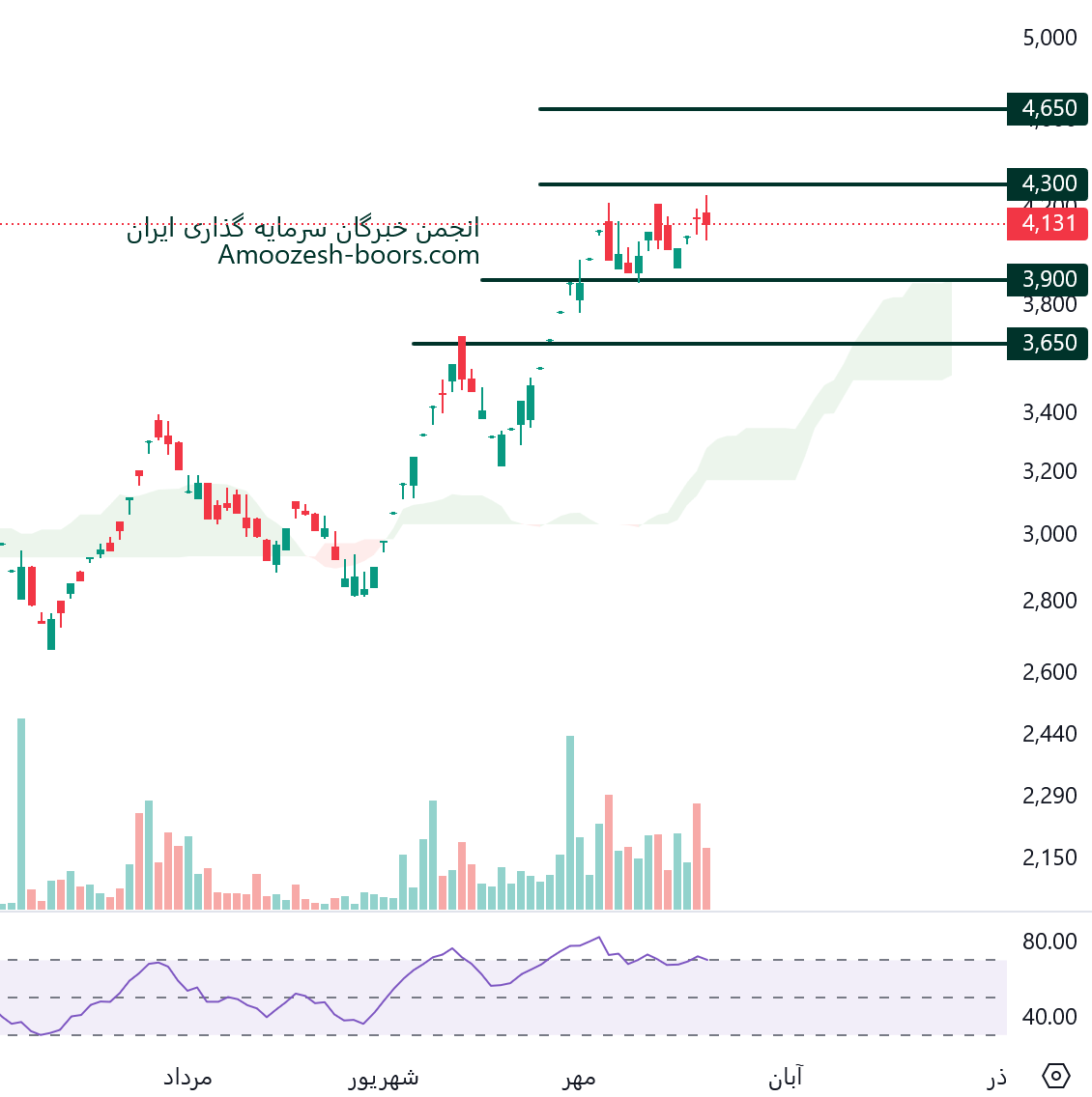 با توجه به شرایط فعلی، در صورت تثبیت قیمت بالای مقاومت 430 تومان، احتمال شکل گیری سیگنال خرید و ادامهی روند صعودی وجود دارد.